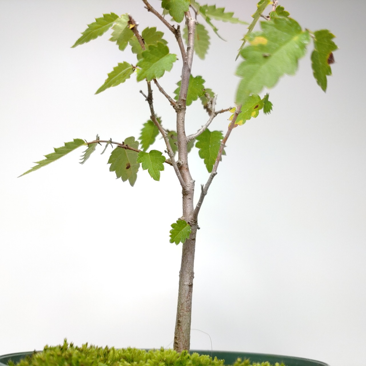 秋の黄葉は黄色からオレンジ色に変化し、味わいがあります。盆栽では、半球形を描く独特のほうきづくりを楽しみます。また、寄せ植えも盆栽でとても人気です。