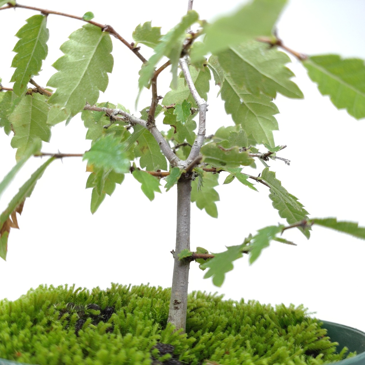 秋の黄葉は黄色からオレンジ色に変化し、味わいがあります。盆栽では、半球形を描く独特のほうきづくりを楽しみます。また、寄せ植えも盆栽でとても人気です。