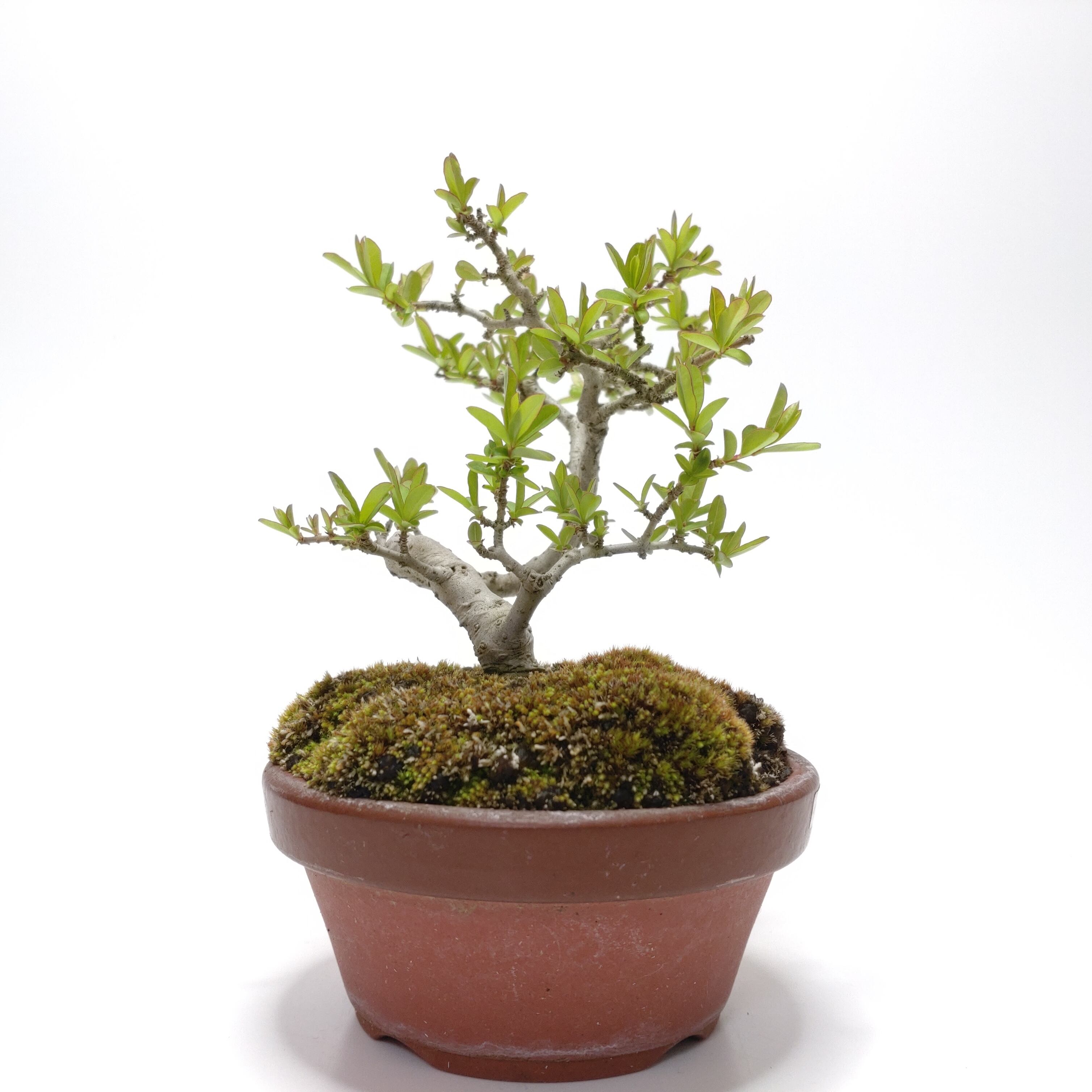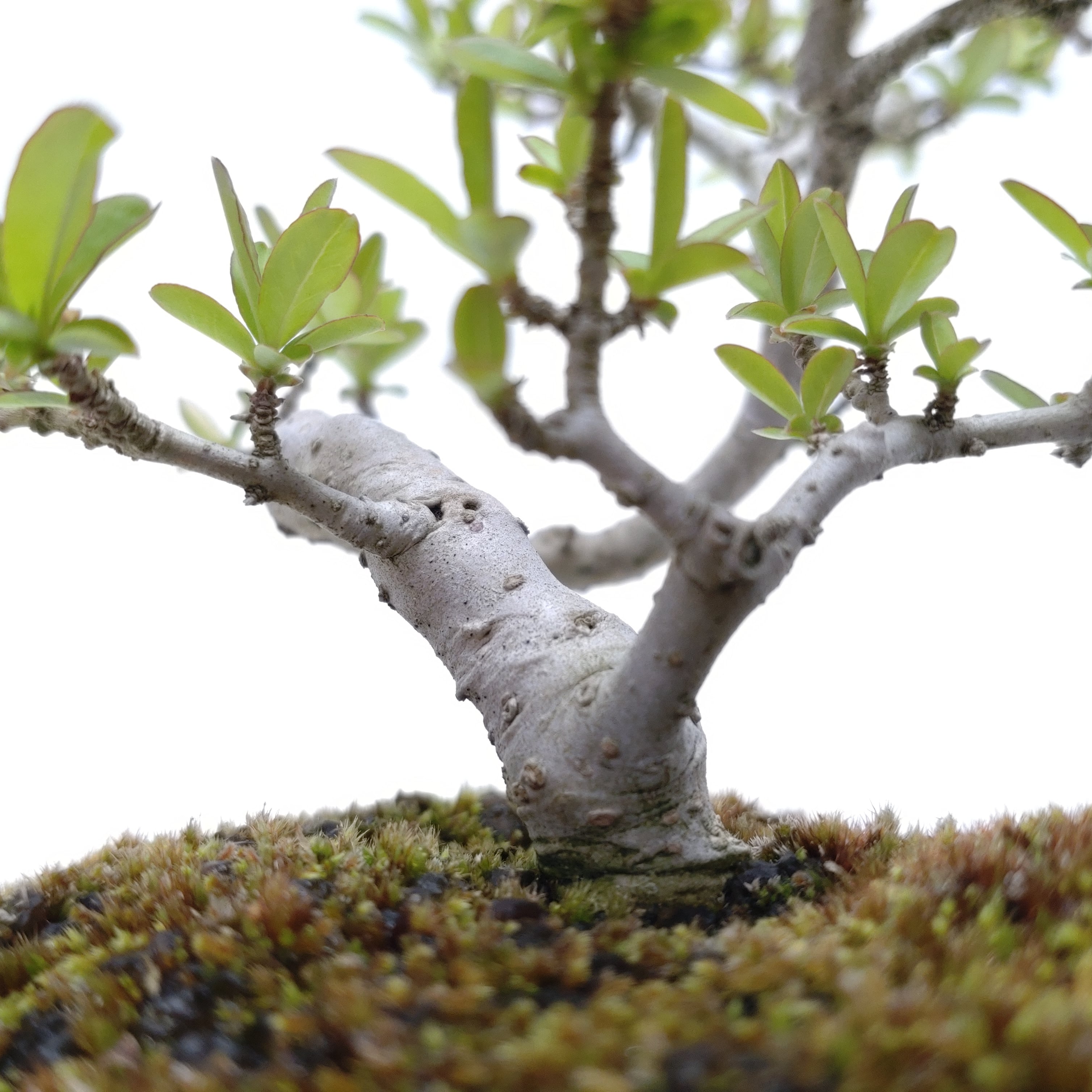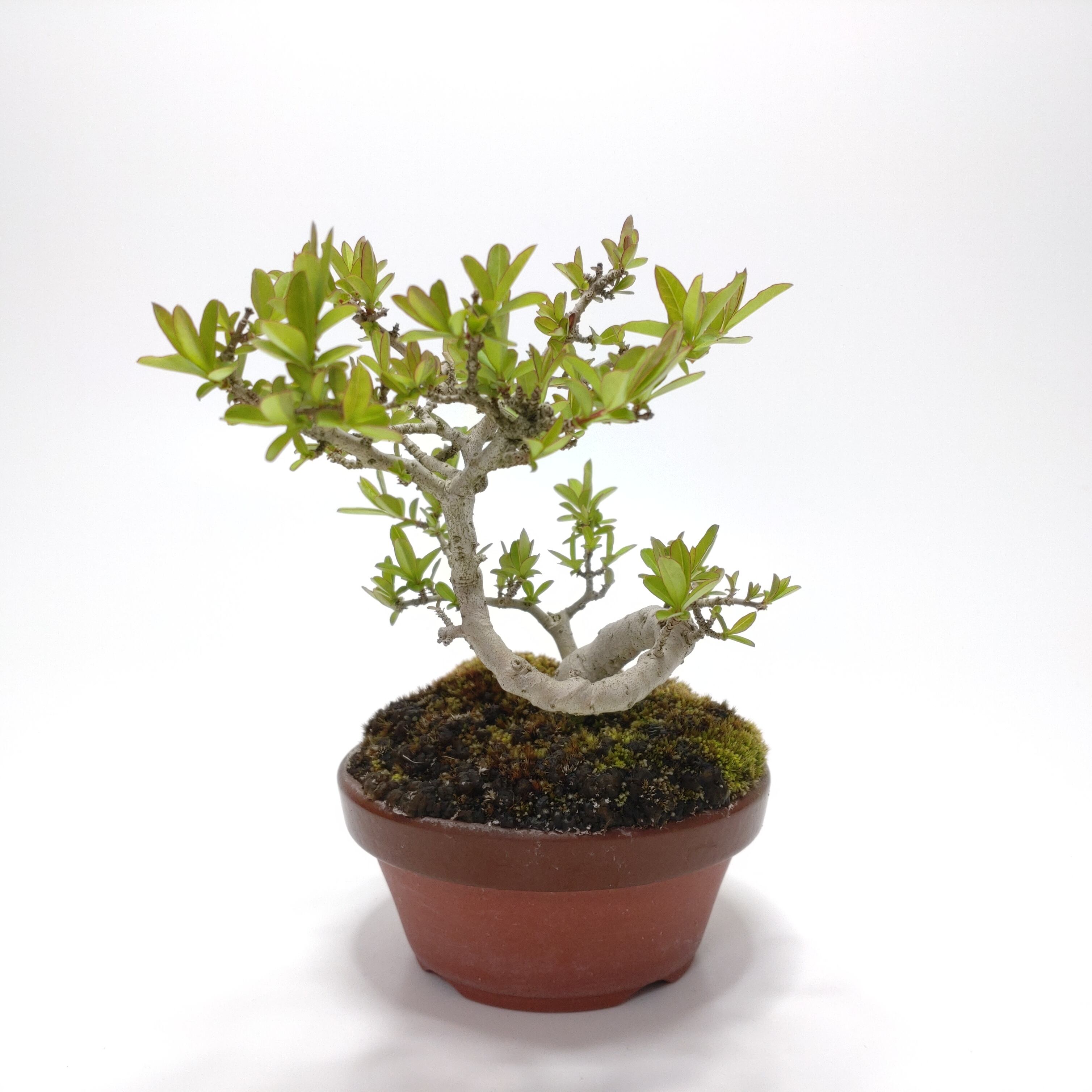 生長が早く、早い時期に幹がはぜて、古色感が出てきます。細かく繊細な枝が魅力で、葉刈りをこまめにすると、よく分枝して密になります。白い小花の房や、紫黒色に色づく実も、渋い味わいです。盆栽では、冬期の寒樹姿が人気です。